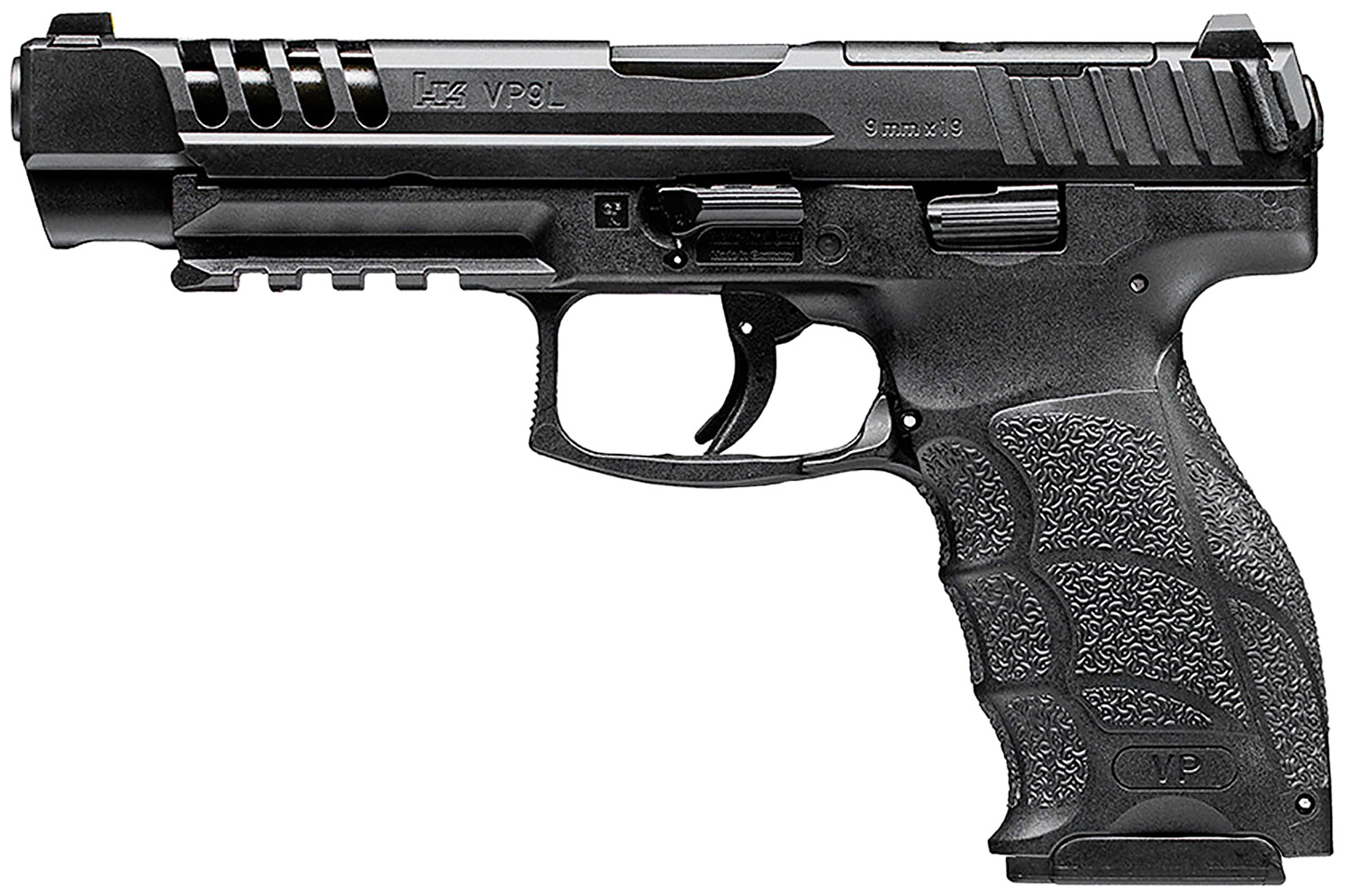 HK 81001158 VP9L 9mm Luger 10+1 5″ Black Polygonal Rifled Barrel, Long/Lightening Cuts/Optic Cut Steel Slide, Polymer Frame w/Picatinny Rail, Black Interchangeable Backstrap Grip